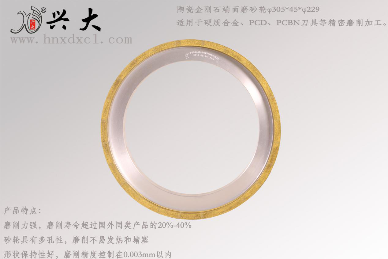 金剛石周邊磨的磨削力強(qiáng),磨削壽命超過國(guó)外同類產(chǎn)品的20%-40%;砂輪具有多孔性,磨削不易發(fā)熱和阻塞;自銳性好,切削鋒利,生產(chǎn)效率高;形狀保持型號(hào),磨削精度高。它從根本上解決了樹脂金剛石砂輪磨削效率低,使用壽命短,形狀保持性差,磨削過程中易碳化,及生產(chǎn)成本和磨削精度的問題。
